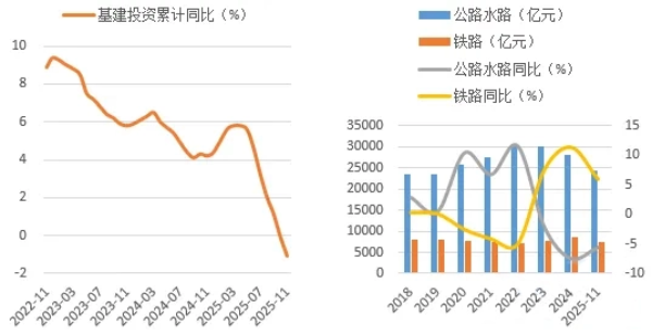 图1:2025年1-11月基建投资下降: