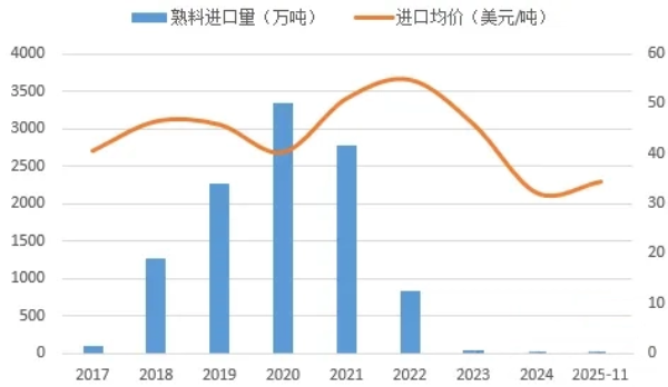 图11:2025年1-11料进口量维持低位水平