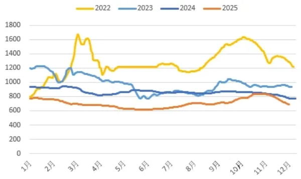 2025年动力煤价格整体震荡,重心下移,水泥企业生产成本压力有所减轻,动力煤现货全年均价706.6元/吨,同比下跌18.3%。