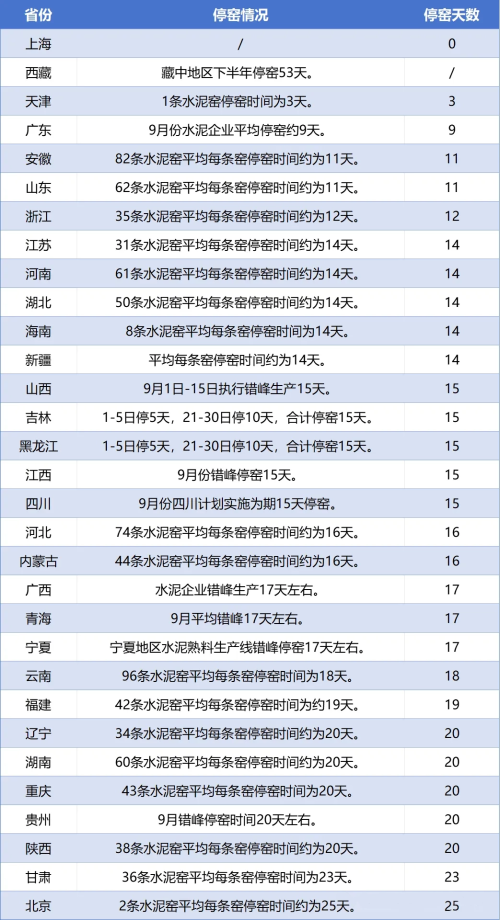 - 31省市水泥企业停窑情况!四季度怎么停?