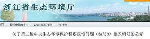 近日,浙江省生态环境厅发布关于第三轮中央生态环境保护督察反馈问题(编号3)整改销号的公示。