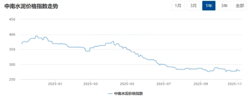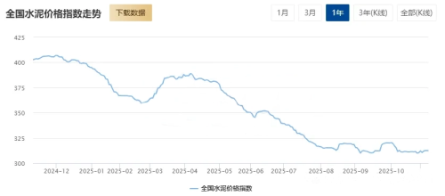 11月7日,全国水泥价格指数报收311.84点,环比上涨0.04%,同比下跌22.7%。
