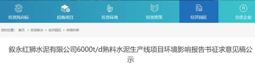 - 红狮水泥新建6000t/d熟料线环评公示-总投资12亿元!