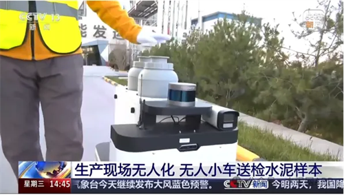走在厂区里,一辆无人运输小车从我身边经过。在它上面装载的两个灰色桶里,装的是水泥样本,要送去检验。以往这个人工岗位需要三班倒,每小时一班,一天就要跑上20多个来回。现在有了它,员工的工作强度大幅降低。