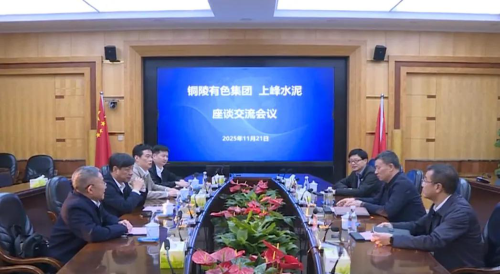 11月21日下午,铜陵有色党委书记、董事长、总经理丁士启在公司会见上峰水泥董事长俞锋一行并座谈。、