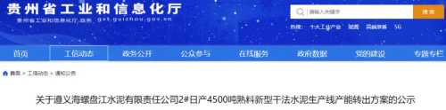 9月19日,贵州省工业和信息化厅发布关于遵义海螺盘江水泥有限责任公司2#日产4500吨熟料新型干法水泥生产线产能转出方案的公示。