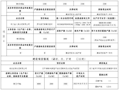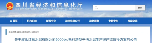 据了解,2021年,四川省经济和信息化厅发布公告,叙永红狮水泥有限公司拟通过退出泸州兰良水泥有限公司2000t/d、四川宏云建材有限公司1200t/d、广汉三星堆水泥有限公司2500t/d、四川金八角水泥有限公司1300t/d等四个项目在四川省泸州市叙永县正东镇落叶坝村建设日产6000吨新型干法水泥熟料及水泥生产线项目。
