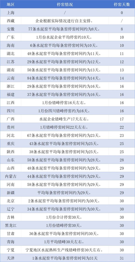 2026年1月,全国市场淡季特征延续。北方地区气温降低,雨雪天气增多,下游施工量继续减少,企业错峰天数有所增加;南方地区多数工程接近尾声,错峰力度相对较大。