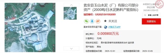 12月1日,据相关产权交易平台信息显示,中国建材集团旗下瓮安县玉山水泥(厂)有限公司部分资产(2000吨/日水泥熟料产能指标)转让,转让单价为59元/吨,转让总价为3450万元。