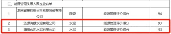 涟源海螺水泥有限公司、靖州台泥水泥有限公司拟入围能源管理头雁入围企业名单。