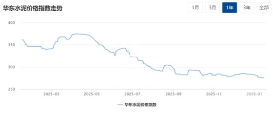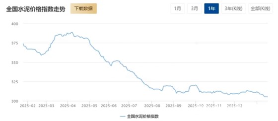 1月16日,全国水泥价格指数报收305.07点,环比下滑0.94%,同比下跌19.27%。