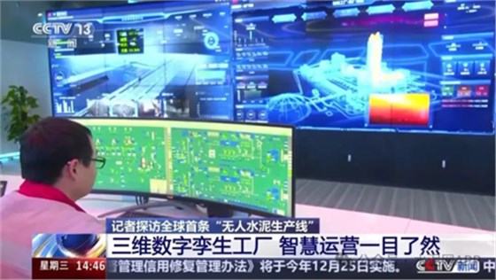 其实这里也并不是一个人都没有,我发现以前有很多需要在现场操作的岗位,都挪到了这个智慧运营中心。他们依托实体的厂房,搭建了一个虚拟的三维数字孪生工厂。这个高高耸立的是预热器,这个横着的是水泥回转窑,包括还有一些其他的工厂的厂房和真实的工厂的一一对应。工作人员免受风吹日晒之苦,在这里只需要动动鼠标,全厂3.5万个数据,包括生产质量、环保、安全等等,都在这里一目了然。