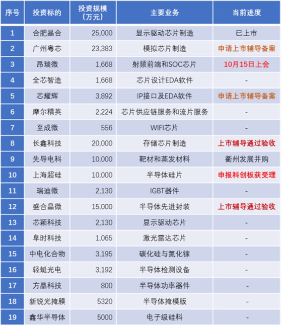 近5年来上峰投资的半导体企业如下: