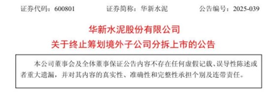 10月8日,华新水泥发布公告,公司决定终止筹划境外子公司分拆上市事宜。