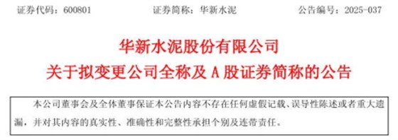 同日,华新水泥发布公告,公司董事会同意将公司中文名称由“华新水泥股份有限公司”变更为“华新建材集团股份有限公司”,公司A股证券简称由“华新水泥”变更为“华新建材”,公司A股证券代码600801保持不变。