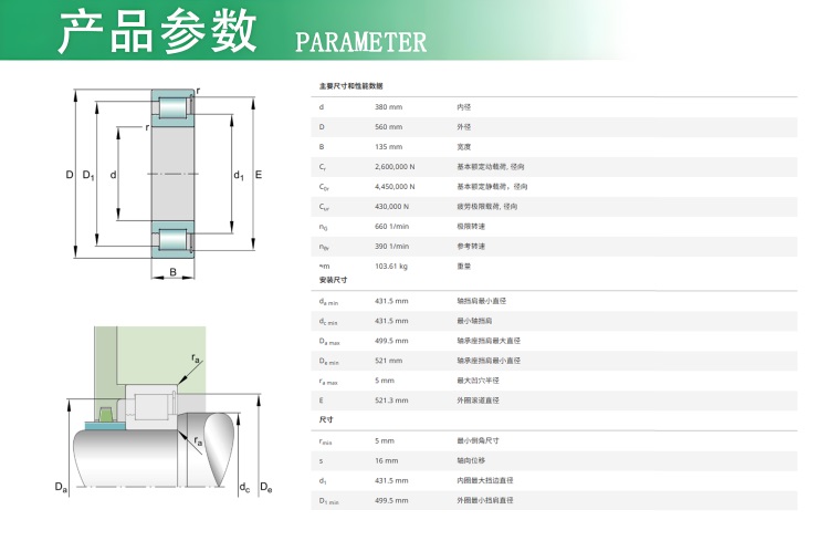 1、满装圆柱滚子轴承有整体内外圈及挡边导向的圆柱滚。有极高向心承载能力、很高的刚性、并且适用于特别紧凑的设计。