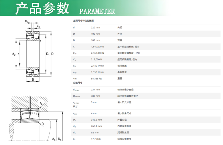 ◆FAG调心滚子轴承22244-BE-XL-C3