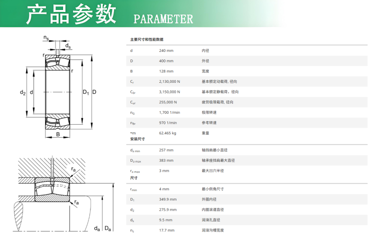 2、可承载双向轴向力和高径向力,为适应重载荷场合要求而设计的;