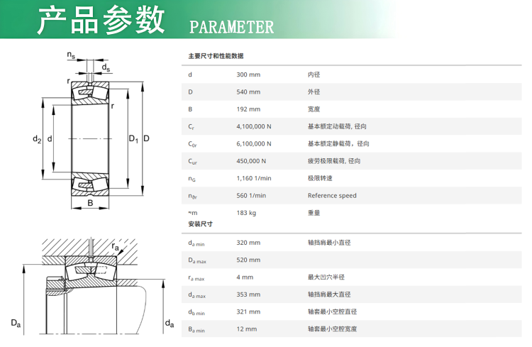 2、可承载双向轴向力和高径向力,为适应重载荷场合要求而设计的;