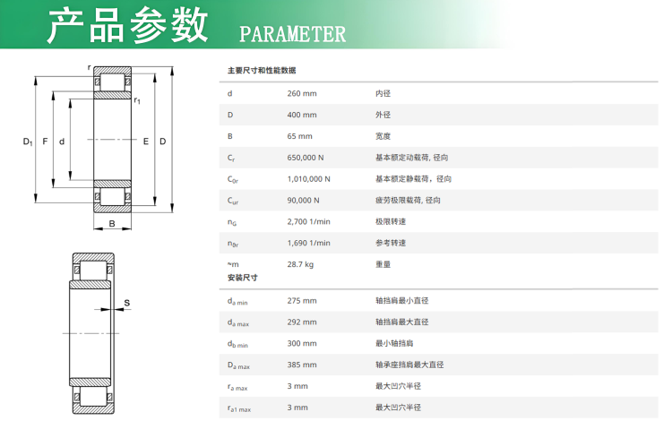 ◆FAG圆柱滚子轴承NU1052-M1-C3