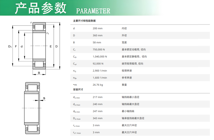 FAG圆柱滚子轴承NU240E.M1.C3 重齿JLX260减速机、重齿JLP220减速机
