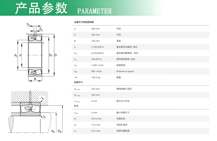 2、可承载双向轴向力和高径向力,为适应重载荷场合要求而设计的;
