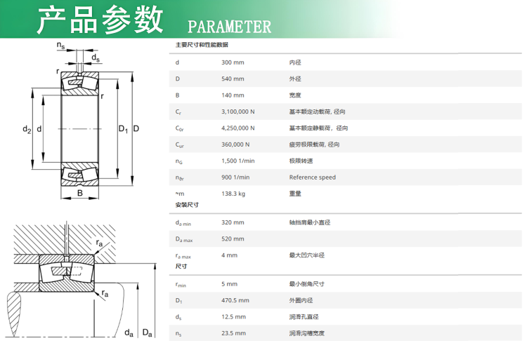 2、可承载双向轴向力和高径向力,为适应重载荷场合要求而设计的;