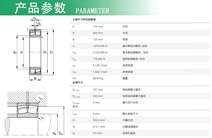 2、可承载双向轴向力和高径向力,为适应重载荷场合要求而设计的;