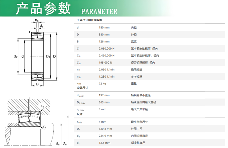 2、可承载双向轴向力和高径向力,为适应重载荷场合要求而设计的;