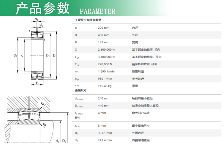 2、可承载双向轴向力和高径向力,为适应重载荷场合要求而设计的;