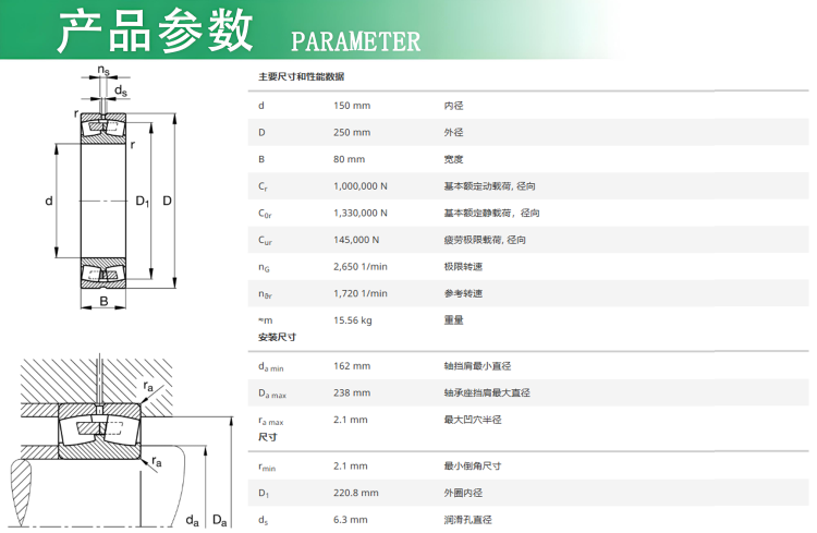 2、可承载双向轴向力和高径向力,为适应重载荷场合要求而设计的;