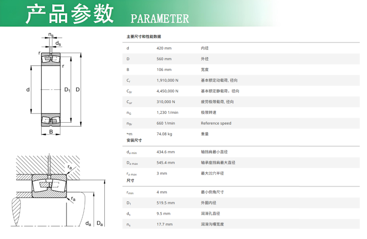 2、可承载双向轴向力和高径向力,为适应重载荷场合要求而设计的;