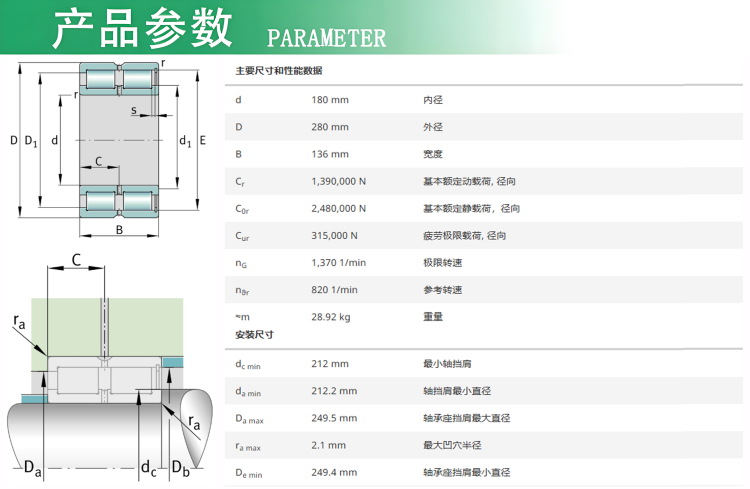 ◆SL185036-TB轴承数据