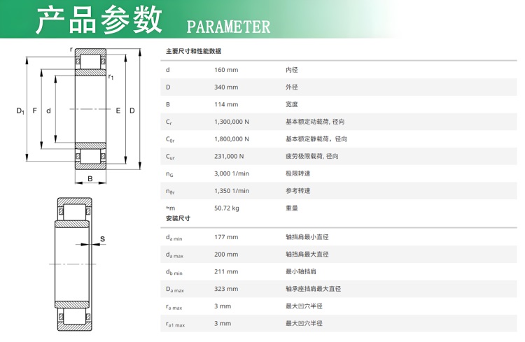 ◆FAG圆柱滚子轴承NU2332-E-M1-C3