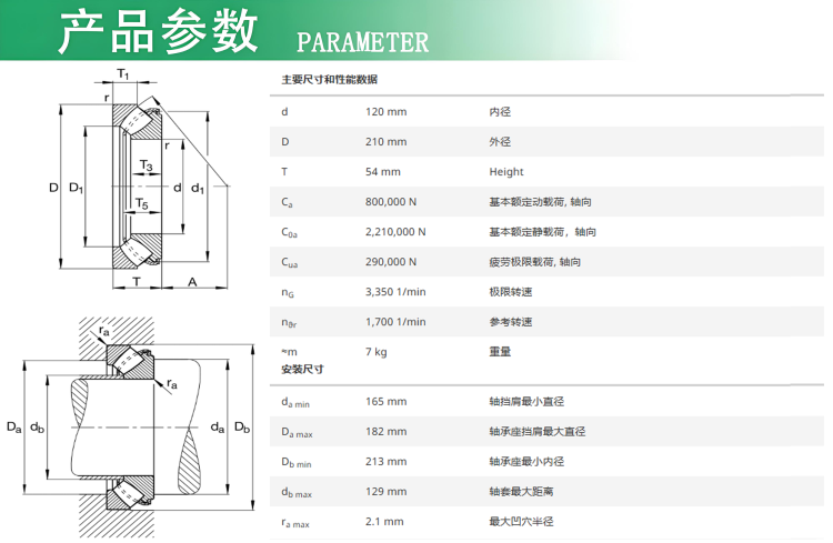 4、可以承受很高的轴向力以及允许相对较高的转速。由于滚道相对于轴承的轴线是倾斜的,因此轴承也可承受径向力。