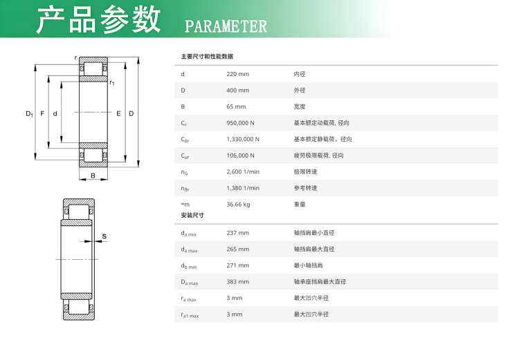 ◆FAG圆柱滚子轴承NU244-E-M1-C3